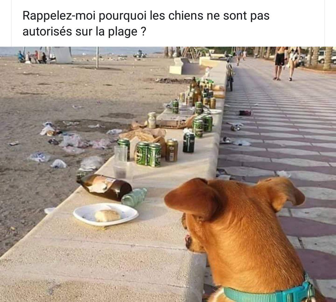 : Les chiens sont interdits sur la plage parce que c'est réservé aux porcs