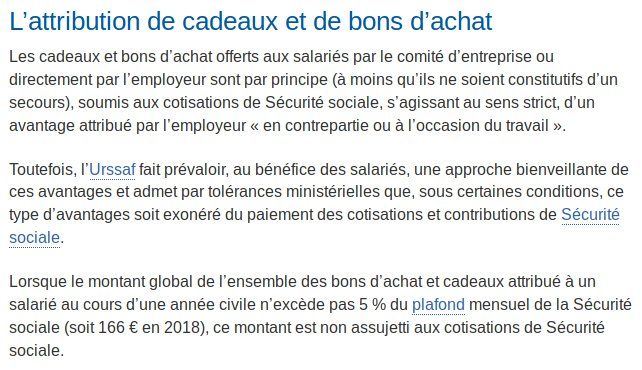 @Ahabounette @Keltounet En vrai c’est DÉJÀ imposé hein… Le plafond proposé est le double de celui actuel : urssaf.fr/portail/home/employeur/calculer-les-cotisations/les-elements-a-prendre-en-compte/les-prestations-liees-aux-activi/les-prestations-non-soumises-a-c/lattribution-de-cadeaux-et-de-bo.html