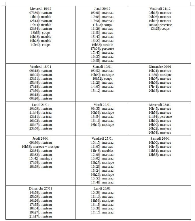 On suspecte quand même fortement notre 2nd voisin d’être le responsable des travaux. Il s’est fait livrer des meubles chez lui la semaine dernière (laissant au passage traîner ses palettes en bois dans les parties communes…).