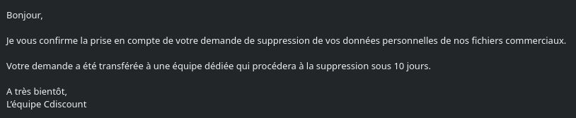 @Cdiscount, franchement… Tu devrais apprendre à lire tes mails… C’est une demande **D’ACCÈS** que je t’ai faite. C’est même marqué en gras qu’il ne faut RIEN supprimer avant que je n’ai validé ce que vous allez me transmettre…