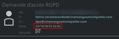 La palme d’or du foutage de gueule #RGPD est décernée à @PatheGaumont… 😱 🤦 😠 Savez-vous que vous avez déjà 2 mois de retard pour la réponse ? 🤔 cc