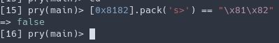 Quelqu’un expert en ruby saurait-il m’expliquer pourquoi [0x8182].pack('s>') n’est pas égal à "\x81\x82" 🤔