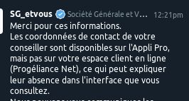Je suis bourré ou alors il n’y a pas d’interface de contact de son conseiller sur l’interface pro de la @SocieteGenerale ? 🤔