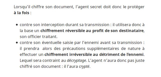 @TheophanyHD @canteole @OnDitChiffrer @PerrineST 3- La « clef » de déchiffrement est uniquement l’objet permettant le déchiffrement, pas forcément la « clef » de chiffrement. « Être capable de casser 3DES » est ici la clef de déchiffrement.
