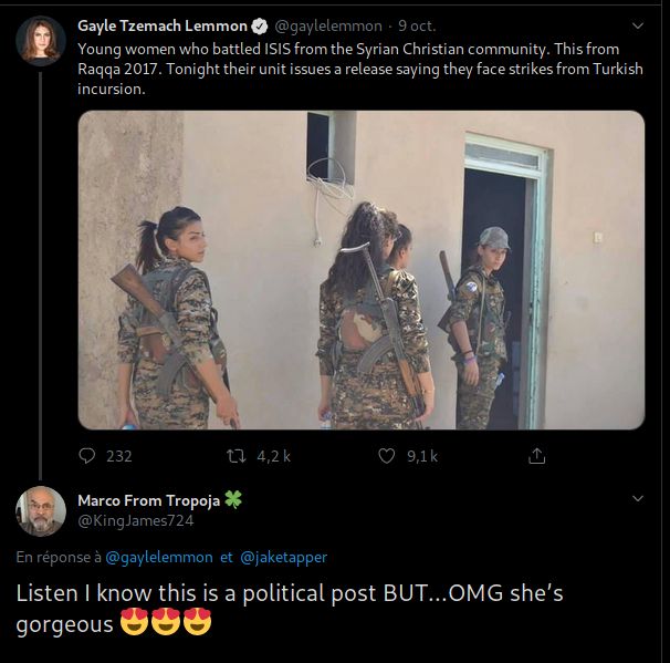 Quand tu es tellement une bite sur patte que tu bavent devant la photo d’une nana qui doit présentement risquer sa vie sous les bombes…
