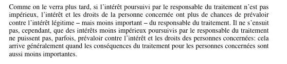 @edasfr @robinberjon @nhoizey @ElieSl @geoffreycrofte @HTeuMeuLeu WP127 : si le besoin n’est pas impérieux, l’intérêt légitime a de fortes chances de ne pas être recevables. GA/Matomo n’est pas impérieux, le système fonctionne très bien sans eux.