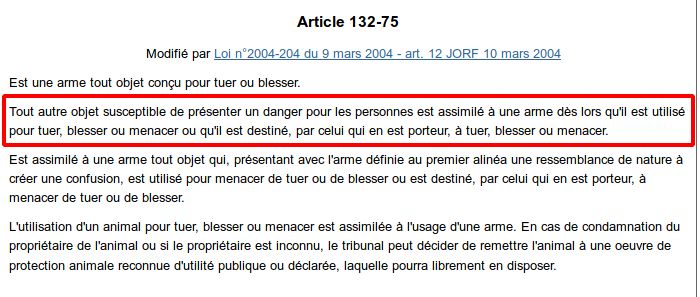 Tout est en fait possiblement une arme par destination… Très facile de tout saisir…
