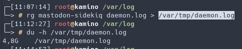 Devinez qui vient de saturer tout /var/log ? Mastodon bien sûr ! 5Go de données quoi… 😱