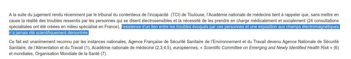 @lemuetleborgne @evematringe @noSteph @Carletdesiles @jervin974 @crabetaureau @ethalises @les_vaxxeuses @drjosephalain Et aussi par l’académie nationale de médecine en France. academie-medecine.fr/electrosensibilite-une-indemnisation-ne-constitue-pas-une-preuve-scientifique/
