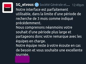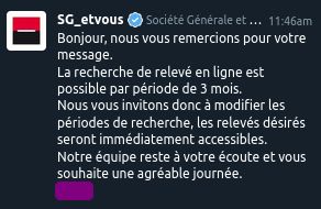 Raison supplémentaire pour quitter la @SocieteGenerale : on n’a accès qu’aux relevés de compte de moins de 3 mois… Ce n’est pas supposé être 5 ans, d’ailleurs, légalement ? 🤔