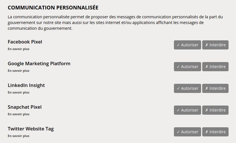 Leur page en JS plante complètement si TarteAuCitron est bloqué par un ad-blocker ou autre. Et la gestion de la demande de consentement est catastrophique… (Tracking d’audience précoché, cookie Xiti quand même déposé avant même le consentement accepté…)