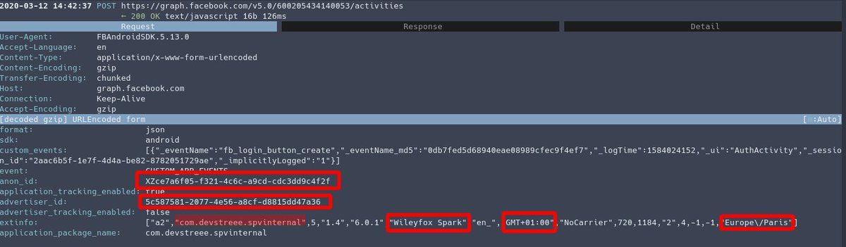 @AmalBentounsi @aris_officiel @vincib @rebetiko_ @tho_jea @akraland @davduf @ExodusPrivacy On peut encore faire plus massif : « Bonjour, vous pouvez nous filer toutes les adresses IP et compte Facebook associés à toutes les requêtes chez vous contenant com.devstreee.spvinternal SVP ? » Boom, un mandat, l’intégralité des utilisateurs de votre service…