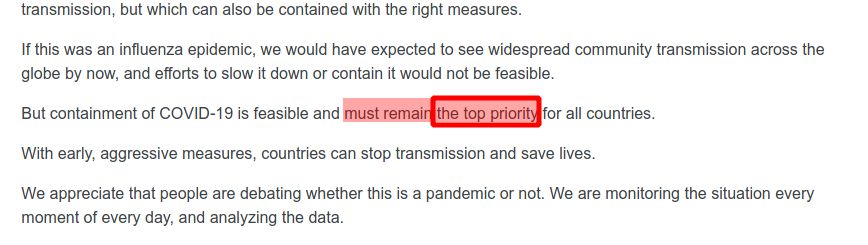 @shyxeo @BaTuCD Le 11 mars, l’état de pandémie est déclaré par l’OMS. Toujours pas de réaction en France. Le lendemain, l’OMS enfonce encore le clou en disant qu’il faut absolument endiguer le problème… Toujours pas de réaction…