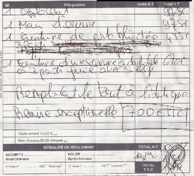 Je n’en reviens pas, mais mon serrurier est toujours en activité !!!! Il vient de faire la même arnaque (même écriture, même montant, même pratique) à un de mes amis !!!!!