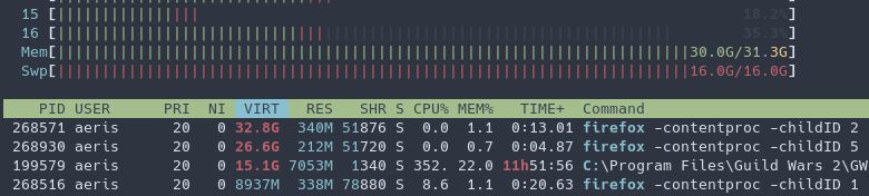Je commence à en avoir ma claque de ce firefox de merde qui bouffe des 10aines de Go de RAM et 16Go de swap pour rien… Et qui me frise tout mon PC toutes les 2h… 😑