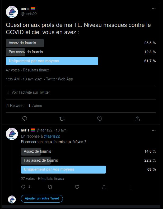 @Naboleon_3 @entreplume @jlff @sxpert1 @MarcDefalco @hejonatane @badaboum79 @ClementSalviani @jmblanquer @cned @education_gouv Et ça vaut ce que ça vaut (aka toujours mieux que pas de sondage du tout) mais du coup :