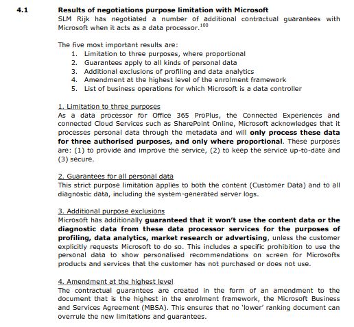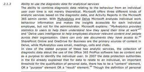 @fbocquet @kedemferre @pbeyssac @2vanssay Ça a aussi l’analyse légale de l’intégralité de toutes les CGU et TOS du service, y compris annexe. Par exemple de MyAnalytics et de Delve qui n’était pas envisagé d’usage au départ mais pouvait l’être quand même à partir des données collectées de télémétrie.