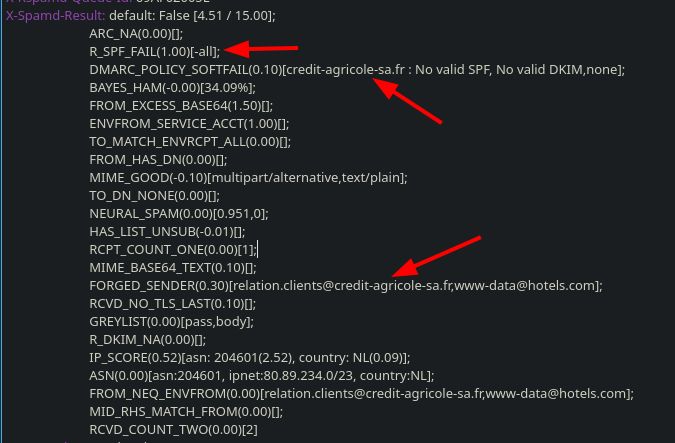 @alarig_ @pgchenu @CreditAgricole Pour le coup c’est bien forgé et invalide au niveau SPF. Du coup je ne comprend pas qu’il soit passé au niveau de rspamd…