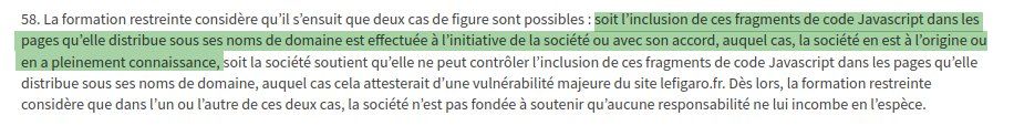 @sxpert1@reesmarc Pour moi c’est le problème de cette formulation… Tout ce dont tu as connaissance/que tu as validé est couvert par le 1er cas. Tout le reste y compris des trucs absolument pas sous ton contrôle ou ta connaissance rentre dans le 2nd. Dans les 2 cas tu en portes la responsabilité.