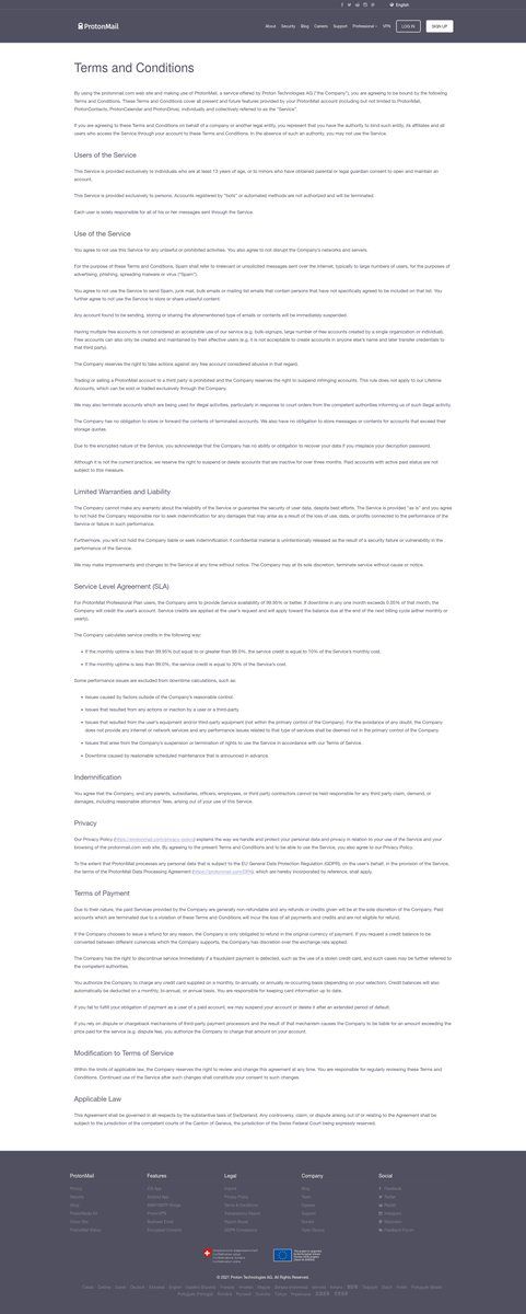 @snae_bpkc @c_chaudier @ProtonMail Leur CGU tient en une image sur Twitter. Tu en connais beaucoup des services comme ça ? Tu penses vraiment qu’on peut faire plus limpide ?