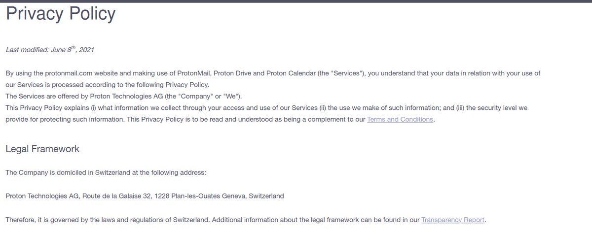 @snae_bpkc @c_chaudier @ProtonMail Et les données stockées sont explicitement listées de manière claire, lisible et intelligible sur leur privacy policy.