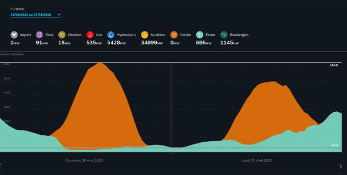 @natmakar @pbeyssac @Solarus0 @xbeaudouin Nuit du 26 au 27 avril. Sur la **totalité** de la prod FR : 600MW. Yolo.