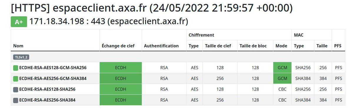 Y’a les boîtes qui sont là en mode « gnagnagna, oui mais les vieux clients, oui mais ie6, oui mais notre support… ». Et puis il y a ceux qui se bougent. Merci @AXA_Banque, quand un truc est bien fait sachons le reconnaître aussi 😊 cryptcheck.fr/https/espaceclient.axa.fr