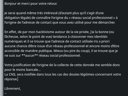 Je vais bien entendu aller creuser un poil, parce que vous me connaissez bien et l’adresse email utilisé dans la prise de contact n’avait bien entendu aucune raison de se retrouver dans la moindre base professionnelle hein…