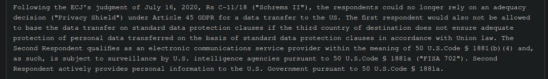 @kedemferre @FlavienLefebvre C’est très clair et au moins déjà Google Analytics, Google Fonts, Stripe et Mailchimp, Cookiebot ont été strikés pour EXACTEMENT le même motif. Motif réplicable à l’envie sur n’importe quel service US.