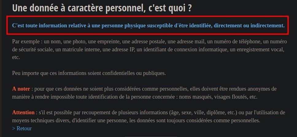 C’est très simple : tu arrives à identifier une personne à partir d’une donnée, c’est nécessairement une DCP. C’est la définition même de DCP.