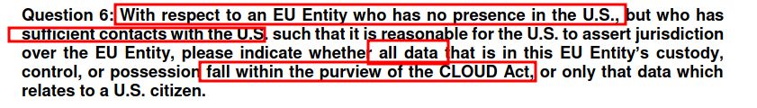 @jr_roy @interchu @SylvRolland @OVHcloud @BrunoLeMaire @jnbarrot @LaTribune @CNIL @googleanalytics @Microsoft @NSAGov @FBI @Conseil_Etat La réponse derrière fait a peu près 2 pages que je ne recopie pas ici. En disant qu’au contraire que seuls les données des personnes US sont exclues de FISA de par la loi