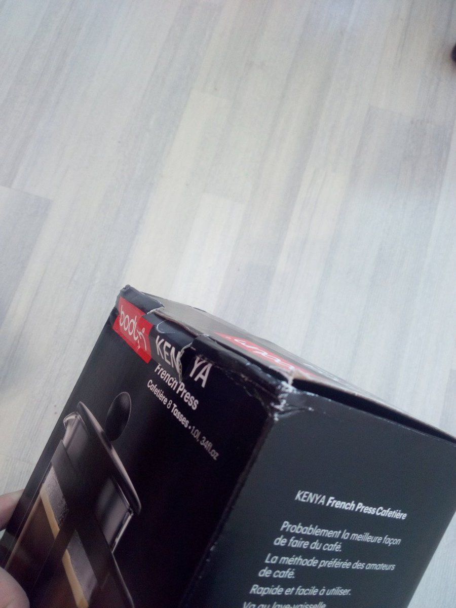 Hello @MaxiCoffee Comme tout bon chat noir qui se respecte, ma nouvelle french press est arrivée cassée… 😢 Le coli a l’air d’avoir effectivement pris un petit coup et l’emballage intérieur est un peu enfoncé mais pas pire qu’un La Poste habituel. Mais ça a suffit a priori à